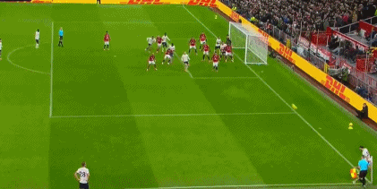 上半时,他们进球来自达洛特,在压制西汉姆基础上,曼联推进到了禁区线,三传两倒给到了禁区中的达洛特。他拿到球之后迅速转身,对着门将来了个爆射。距离太近,门将来不及扑救皮球就滚入大门,就此,曼联领先了!